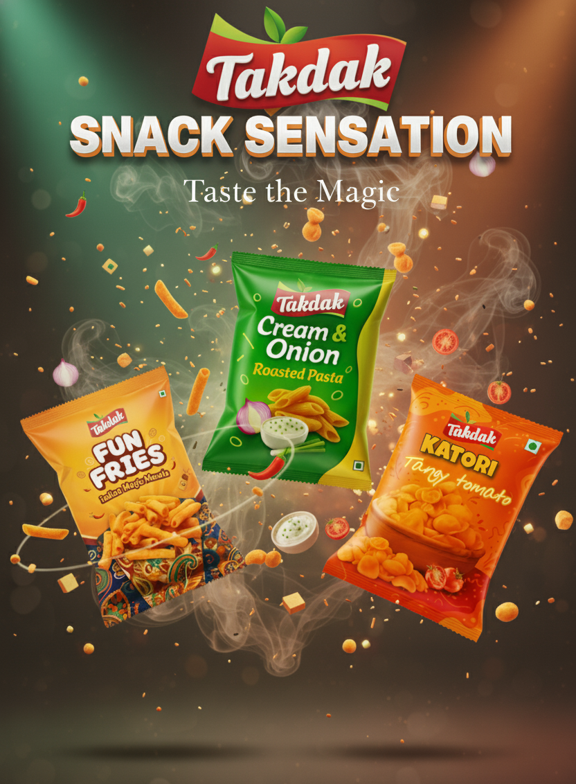 If you think that you will enjoy the pleasure of eating Delicious and authentic snacks then Takdak is the only choice for you. Takdak has shown excellence in producing snacks in India. We have taken a determined role in using the best quality ingredients in the market to balance human health and crunchy spicy taste, using hygienic methods and premium quality packaging. If you are looking for delicious snacks for your business or for retail purchase, then undoubtedly every item of Takdak is the best for you.